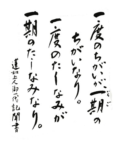 ■ 2006年 9月 ■ 一度の違いが一期の違いなり。 一度のたしなみが一期のたのしみなり。 蓮如上人一代記聞書 教えを得手に聞くことは、真理を知らないままに一生を過ごしその迷いを知れば、毎日を悦んでいける。