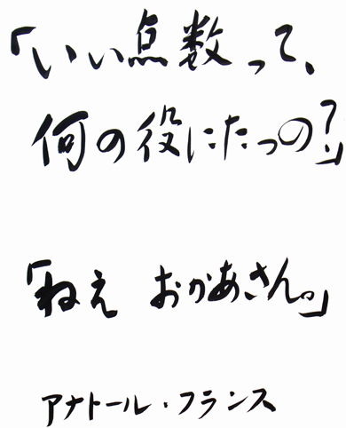 ■ 2007年11月 ■ いい点数ってなんの役にたつの? 「ねえおかあさん。」 アナトール・フランス こどもにこう聞かれた時 あなたならどう応えますか?