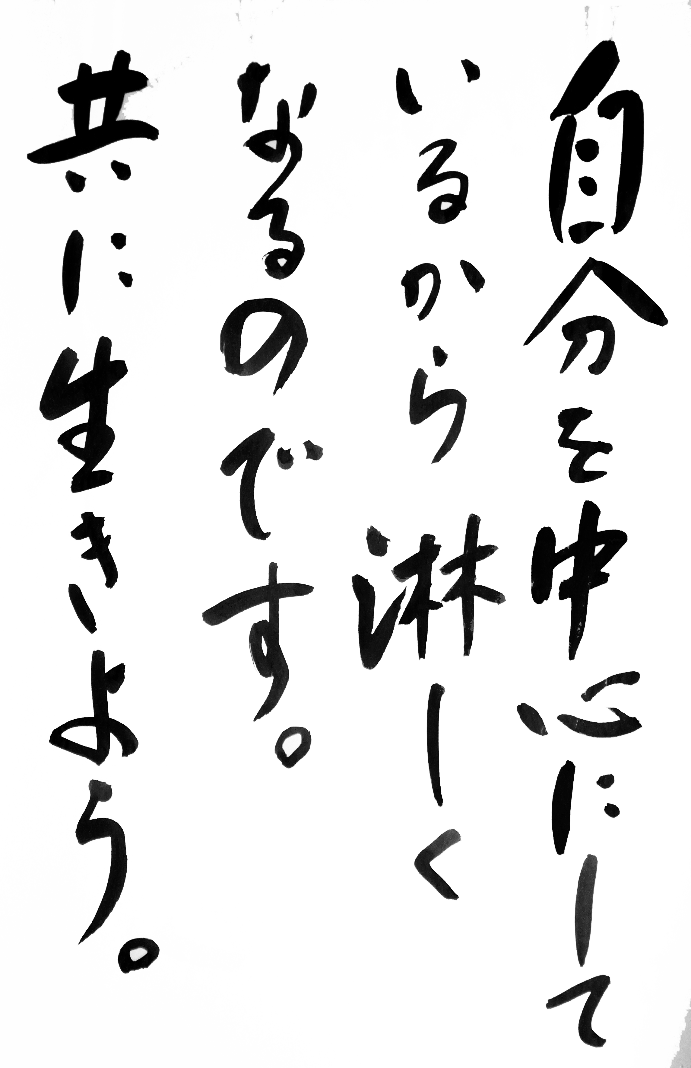 ■ 2020年 2月 ■ 自分を中心にしているから 淋しくなるのです。 共に生きよう。 共に生きている事実を見うと、「自分さえよければ」という心になる。 そのこころは修羅である。
