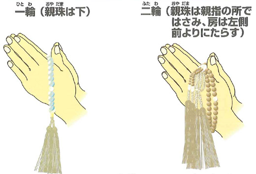 ※念珠は左手に持ち、合掌のとき両手にかけます。