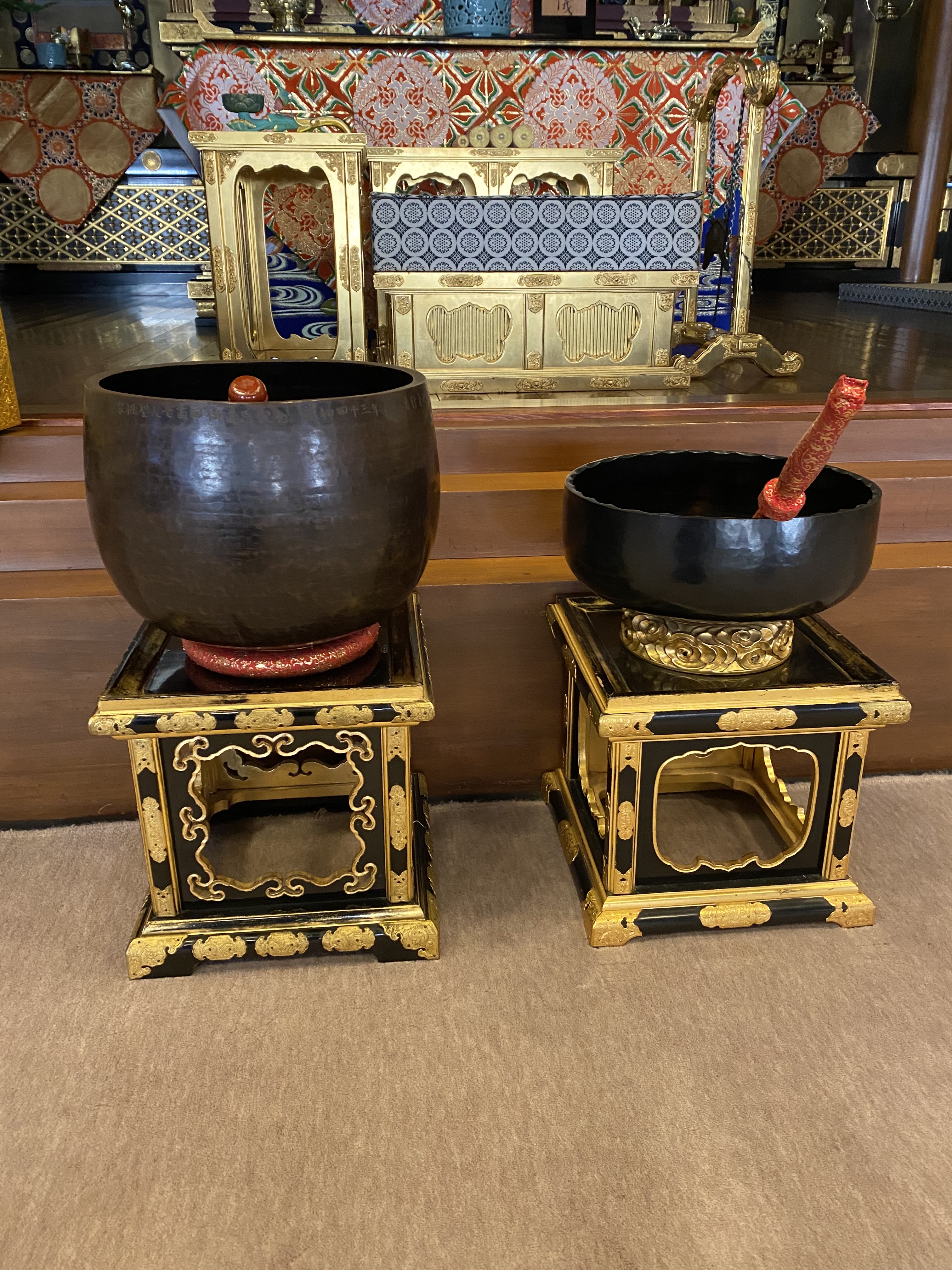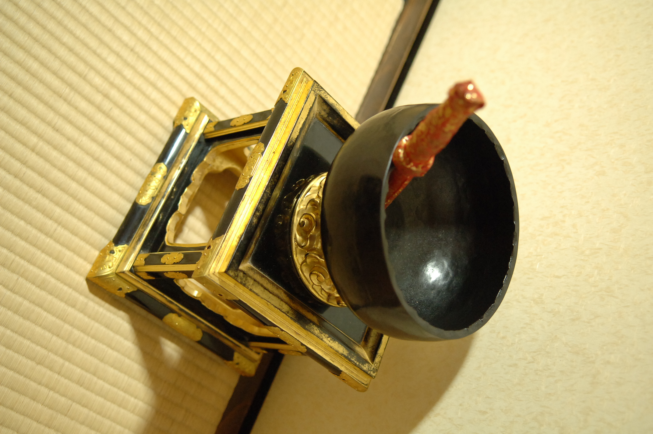 したがって、合掌するときやお供えした時などに鈴は鳴らしません。お勤めしないときに撥は金の中におさめておきます。